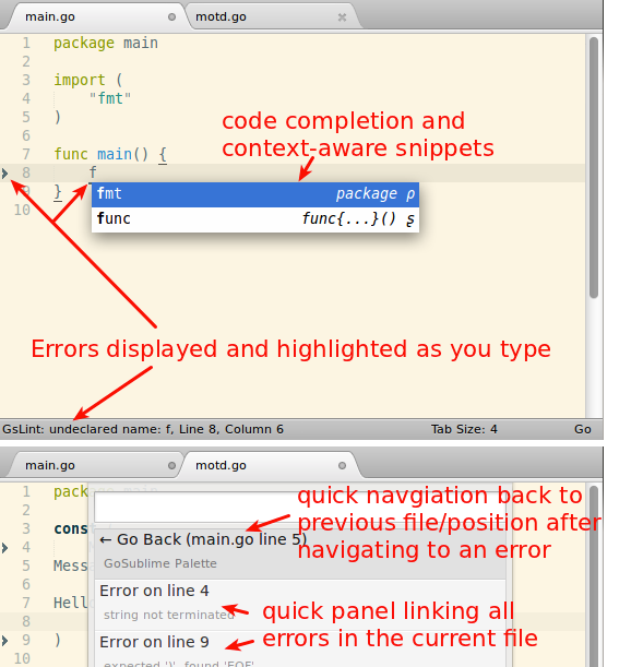 这里将介绍Sublime Text 3(以下简称Sublime)+ GoSublime + gocode的组合,那么为什么选择这个组合呢?