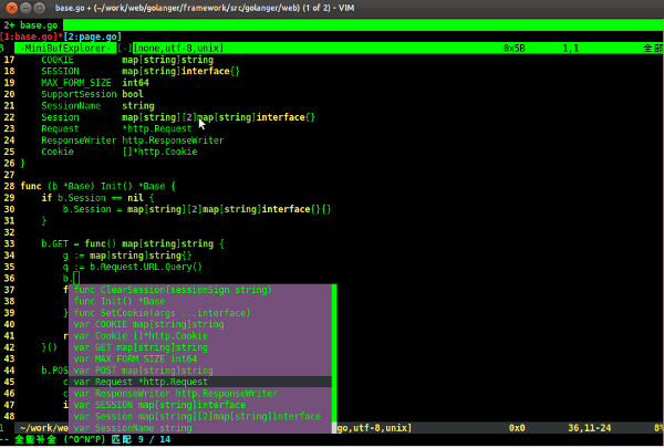 图1.9 VIM编辑器自动化提示Go界面