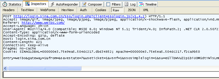 图3.5 fiddler抓取的POST信息