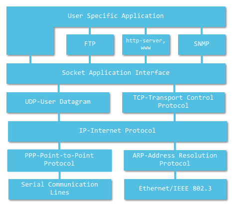 网络中的进程之间如何通过Socket通信呢?首要解决的问题是如何唯一标识一个进程,否则通信无从谈起!在本地可以通过进程PID来唯一标识一个进程,但是在网络中这是行不通的。其实TCP/IP协议族已经帮我们解决了这个问题,网络层的“ip地址”可以唯一标识网络中的主机,而传输层的“协议+端口”可以唯一标识主机中的应用程序(进程)。这样利用三元组(ip地址,协议,端口)就可以标识网络的进程了,网络中需要互相通信的进程,就可以利用这个标志在他们之间进行交互。请看下面这个TCP/IP协议结构图
